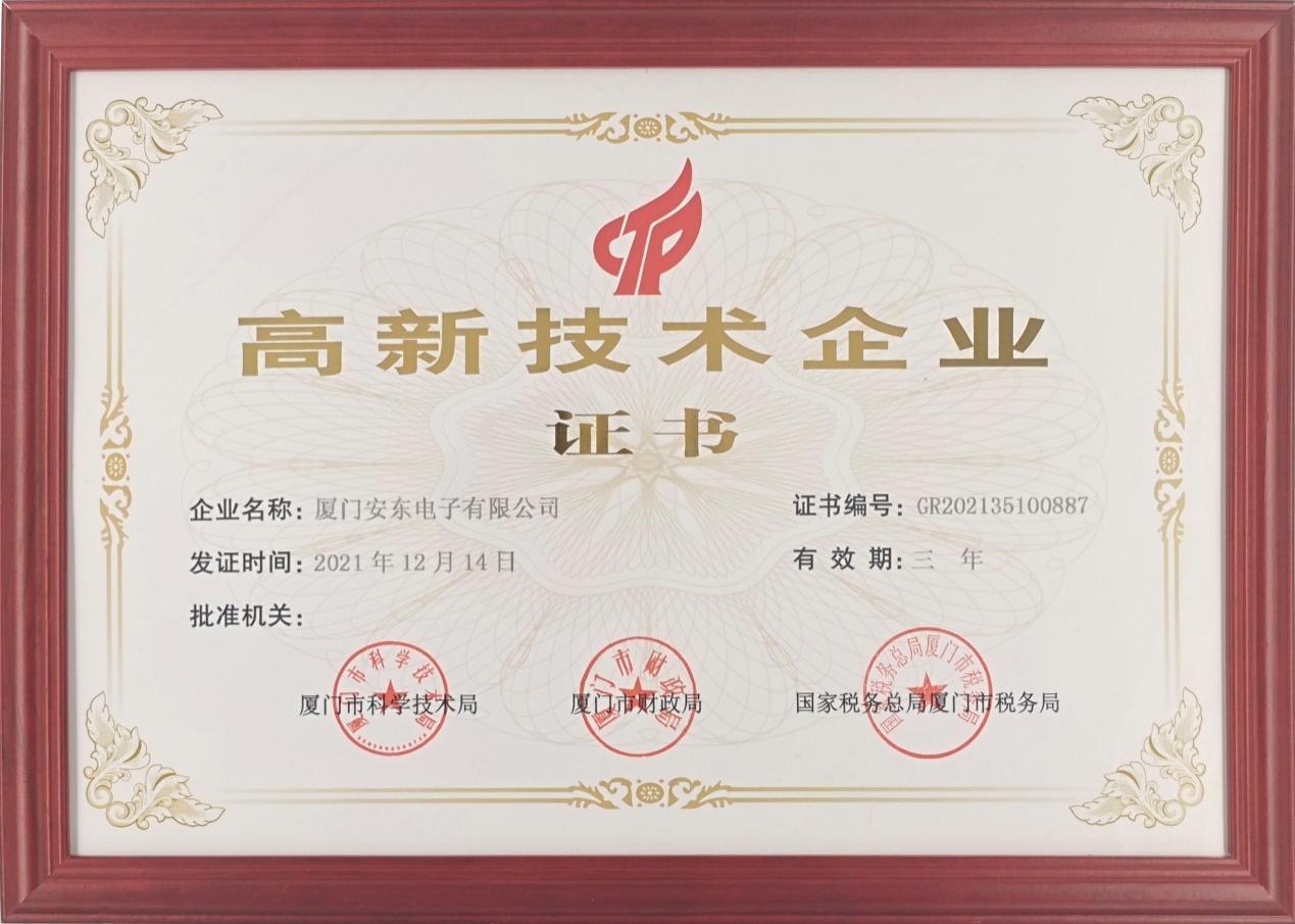 新聞中心 > 公司新聞 > 廈門安東電子連續(xù)16年榮獲廈門市高新技術企業(yè)稱號