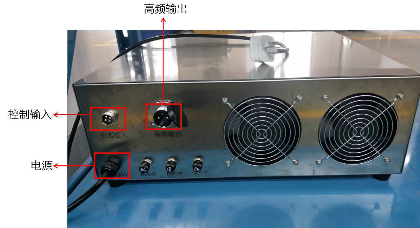 3、將超聲波換能器通過線纜接入電源背板的高頻輸出插口。