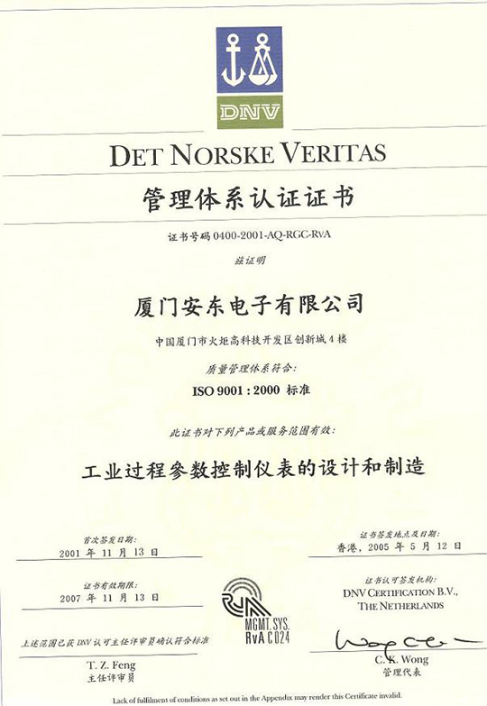 祝賀廈門安東電子再次通過挪威船級社(DNV)ISO9001國際質(zhì)量管理體系的換證