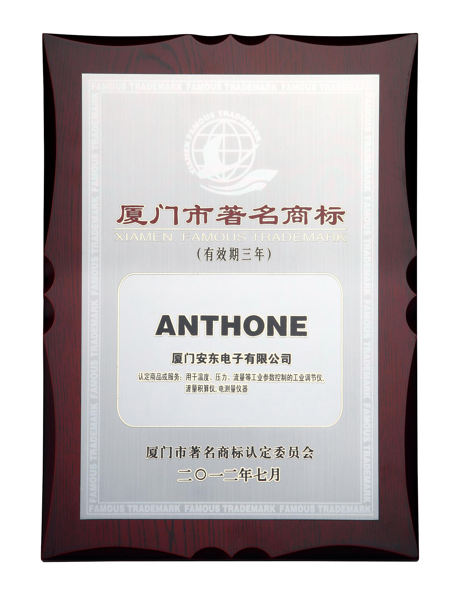 ??喜訊:廈門安東電子的“ANTHONE”商標(biāo)榮獲《廈門市著名商標(biāo)》