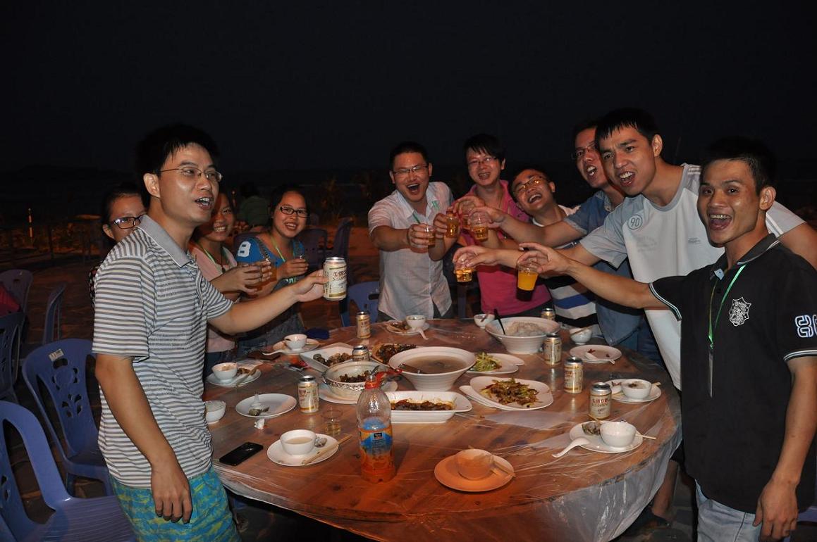 經(jīng)過公司的精心安排與計劃,在9-6日中午2點半共100多人乘坐兩輛旅游車到漳州六鰲目的地,一路我們談笑風生,此時大家都表現(xiàn)格外的輕松,從各方面都能感受到公司給予的這次福利,給大家?guī)砹藷o此的喜悅!大家都發(fā)自內(nèi)心的感謝公司給予大家提供的這次機會。一路上我的心情很緊張、又很期待。傍晚五點多我們到達六鰲時,雖然是傍晚時分,但還是能感受到夏天海邊清涼。一下車,放眼望去一片開闊的金沙海灘。沙灘保存著自然的美貌,沒有一點浮夸,一點做作。海灘都美得不自然,不自信。就像整容美女那樣不純真,不大氣,骨子里永遠都透著卑微和恐慌。到達目的地的第一件事情就是拍我們公司的合照。在沙灘上拍下我們公司全體員工合影照,也是為我們公司企業(yè)文化建設(shè)帶來痕跡。接下來我們要在海灘上搭帳篷的,但是誰都不知道半夜?jié)q潮會漲到哪里,當時還半開玩笑的說也許當明天早上醒來就發(fā)現(xiàn)自己已經(jīng)在海中央了呢?后來我們就把搭帳篷的地點定在了海灘的最上面了。我趁大家都還沒選好地方的時候就選了一塊最平的地方來搭帳篷,而且我和賢虎一個帳篷,這樣當然是為了方便晚上的時候說話了。一直以為搭帳篷是件挺麻煩的時候,可是真的要自己動手的時候發(fā)現(xiàn)原來沒有想象中的那么困難,只是看著他們搭了一遍就學(xué)會了,搭完帳篷自己也輕輕的松了一口氣。