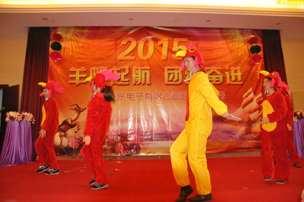 聆聽著各位安東電子領(lǐng)導(dǎo)的發(fā)言,我的思緒伴著演講聲,引導(dǎo)著我回顧公司走過的不平凡的路。而經(jīng)過半年多的努力和付出,看著自己一步步地走向成熟,我的心中也充滿著感慨。公司年會(huì)不僅是對(duì)一年的工作做一個(gè)整體的回顧和總結(jié),將安東電子的下一年的目標(biāo)以及企業(yè)文化灌輸給全體員工,更重要的是與員工進(jìn)行零距離的溝通,使員工體會(huì)到來自公司領(lǐng)導(dǎo)的關(guān)懷,并對(duì)公司的文化有了更深刻的領(lǐng)悟。 人生的一點(diǎn)一瞬,都會(huì)留下奮斗的影子,也會(huì)留下寶貴的精神財(cái)富和刻骨銘心的回憶。奮斗,是我們不變的理念。生命不息、奮斗不止。而此次年會(huì)的主題便是:“‘羊’帆起航、團(tuán)結(jié)奮進(jìn)”。圍繞著這一主題,我們開展了一系列的活動(dòng)。 相比往年而言,本次年會(huì)的節(jié)目較少,但都堪稱經(jīng)典,也融入了更多往年不曾有過的元素在里頭。隨著鏗鏘有力的大合唱《團(tuán)結(jié)就是力量》拉開了晚會(huì)的帷幕。經(jīng)典熱辣的開場舞調(diào)動(dòng)了晚會(huì)的氣氛;魔術(shù)表演更是讓人稱奇,尤其是小朋友的加入,增加了魔術(shù)的看點(diǎn)和神秘感;來自嘉賓小朋友的樂器串燒讓我們領(lǐng)略到音樂世界的美妙,兒童世界的純真與美好;雙簧表演《樂極生悲》讓人忍俊不禁;當(dāng)下流行的舞蹈《小蘋果》也被搬上了舞臺(tái),動(dòng)感十足的舞姿,讓人拍手稱贊;小品《算命2》以詼諧幽默的語言諷刺了社會(huì)中某種利用迷信進(jìn)行詐騙的行為;隨著音樂聲起,搞笑舞蹈《安東三寶》精彩絕倫,惟妙惟肖,讓人捧腹大笑。最后,由生產(chǎn)部帶來的舞蹈《小雞小雞》將整場晚會(huì)推向了高潮。 今年的《水果蹲》游戲,趣味十足,并且在原有的游戲規(guī)則上別出心裁地升級(jí)為《安東產(chǎn)品蹲》,既體現(xiàn)了游戲的樂趣,同時(shí)也能檢驗(yàn)大家對(duì)我們公司產(chǎn)品的熟悉程度,可謂一舉兩得。另一個(gè)游戲《踩氣球》,這個(gè)游戲主要是圍繞我們的主題“團(tuán)結(jié)奮進(jìn)”開展的。