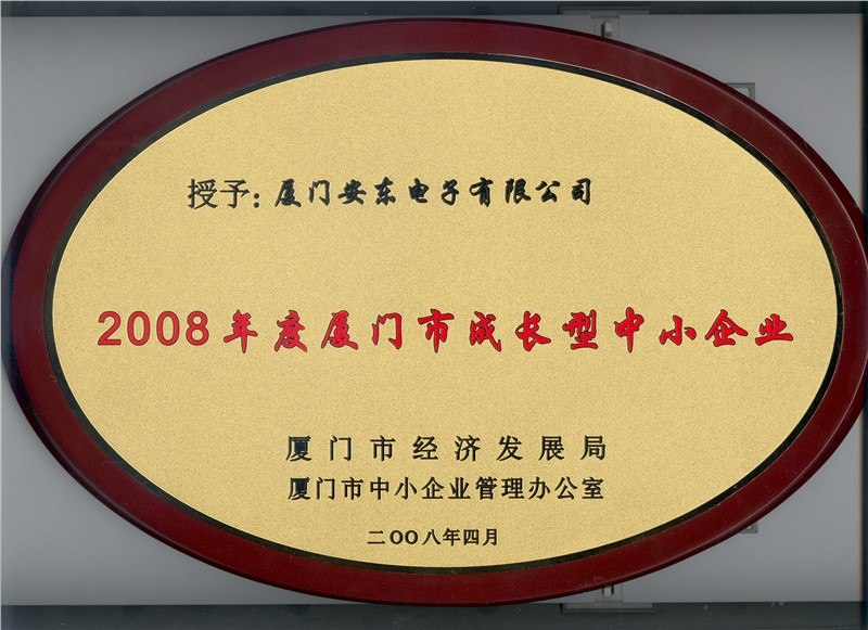 為實(shí)施“廈門市中小企業(yè)成長工程”,鼓勵(lì)和扶持符合國家產(chǎn)業(yè)政策并極具成長性的中小企業(yè)發(fā)展,來自廈門市經(jīng)發(fā)局、財(cái)政局、銀監(jiān)局、國資委和各行業(yè)協(xié)會(huì)等部門的領(lǐng)導(dǎo)、專家組成的評(píng)審團(tuán),對(duì)全市6萬多家中小型企業(yè),經(jīng)過申報(bào)、初審、終審、公示等四個(gè)環(huán)節(jié),歷經(jīng)半年的時(shí)間,終于產(chǎn)生161家“2008年度廈門市成長型中小企業(yè)”。廈門安東電子有限公司位居榜首,這是繼去年(2007年)公司獲該殊榮后又再度榮獲此榮譽(yù),更加突顯了安東公司極具發(fā)展后勁的自主創(chuàng)新高新技術(shù)企業(yè)。
